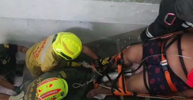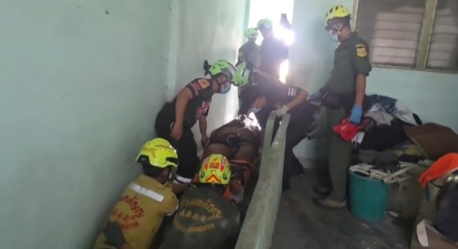 ช่วยเหลือผู้ป่วยน้ำหนักกว่า 200 กก. จากอาคารพาณิชย์ 5 ชั้น ในชุมชน 70 ไร่ คลองเตย สำเร็จ