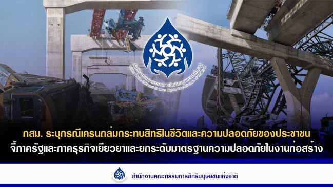 ระบุกรณีเครนถล่มกระทบสิทธิในชีวิตและความปลอดภัยของประชาชน จี้ภาครัฐและภาคธุรกิจเยียวยาและยกระดับมาตรฐานความปลอดภัยในงานก่อสร้าง