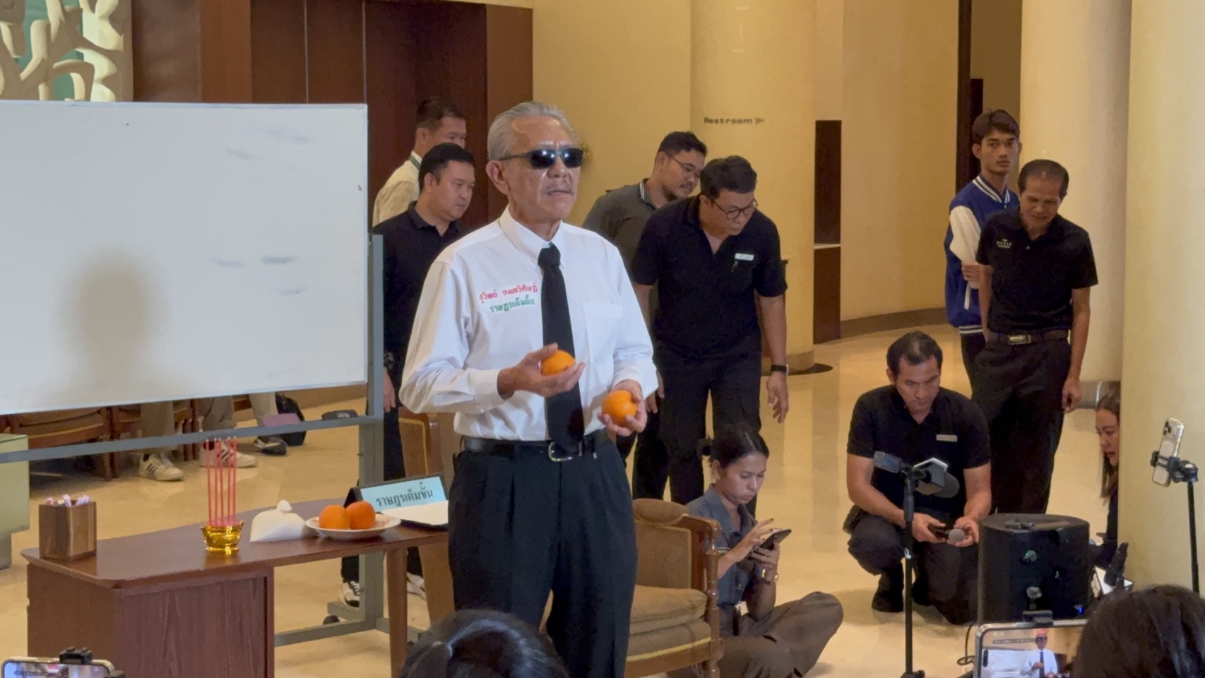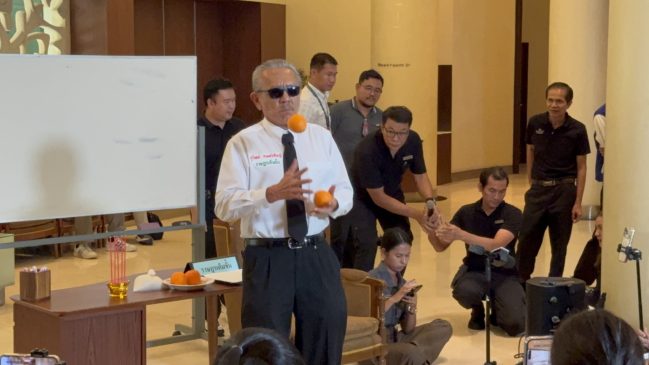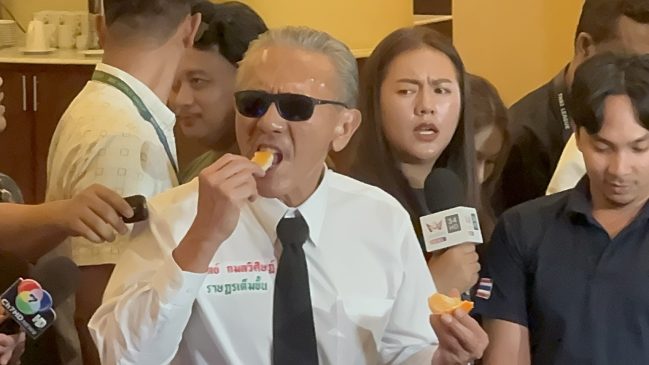 จากนั้นนายชูวิทย์ได้นำส้มขึ้นมาแกะเปลือกแล้วรับประทาน และบอกว่าส้มนี้ยังไม่หวาน ต้องบ่มอีกนิดถึงจะพอดี ต้องค่อยเป็นค่อยไป งั้นขอกินอีกที แต่มันก็ยังเปรี้ยวอยู่ ถ้ารออีกหน่อยอาจจะดีกว่านี้