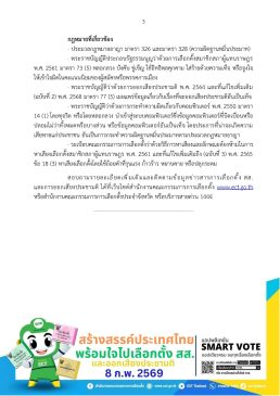 คำเตือนถึงผู้สมัครและประชาชน กกต. เน้นย้ำให้ผู้สมัคร พรรคการเมือง และประชาชนทั่วไป การหาเสียงหรือโพสต์ข้อความทางสื่ออิเล็กทรอนิกส์ต้องเป็นเรื่องจริง ไม่ใส่ร้ายด้วยความเท็จ และไม่ใช้ถ้อยคำที่ผิดระเบียบ เพื่อให้การเลือกตั้งเป็นไปอย่างสร้างสรรค์