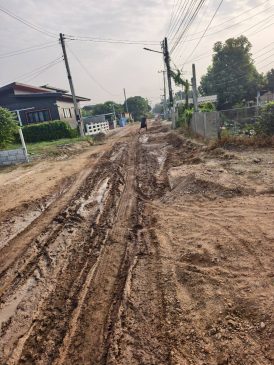 ผู้สื่อข่าวรายงานว่า ที่หมู่ 6 หนองเสือ ซอย 8 ตำบลกรับใหญ่ อำเภอบ้านโป่ง จังหวัดราชบุรี ได้มีผู้รับเหมา ช่างทำถนน เข้ามาดำเนินการรื้อถนนเก่าออกตลอดทั้งเส้นทาง โดยที่ชาวบ้านไม่รู้ล่วงหน้ามาก่อน ว่าจะมีช่างเข้ามารื้อทำถนน จึงทำให้สัญจรไปมาลำบาก ถนนเป็นหลุม เป็นบ่อ และเป็นขี้เลน รวมถึงเวลารถแล่นผ่าน ฝุ่นละอองจากถนนปลิวเข้าบ้านเรือนเดือดร้อนกันทั้งซอย เสื้อผ้าที่ตากไว้ โดนฝุ่นจับแดงเถือก ต้องซักใหม่หลายรอบ ตอนนี้ไม่สามารถตากเสื้อผ้าได้ รวมถึงผู้รับเหมาดันมาทำท่อประปาแตกหัก เสียหาย ทำให้เดือดร้อนหนักเข้าไปอีก ยิ่งตอนนี้ไม่มีน้ำใช้ อุปโภคและดำเนินการในชีวิตประจำวัน