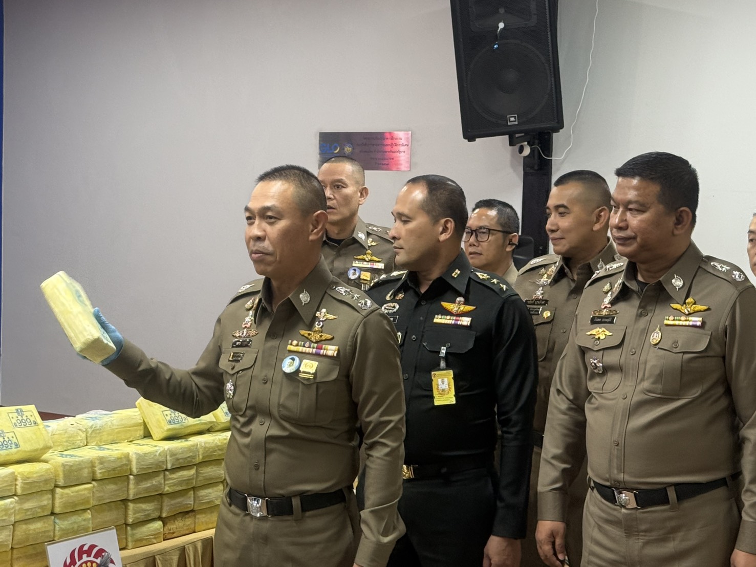 หน่วยข่าวกรองทางทหาร กองทัพบก โดย พล.ต.อภิชัย ทองธรรมชาติ ผบ.ขกท., พ.อ.ปรเมษฐ์ ปาลกะวงศ์ ณ อยุธยา ผบ.สปข.ขกท.ศปก.ทบ. ร่วมกันแถลงผลการจับกุมผู้ต้องหาในเครือข่ายยาเสพติดล๊อตใหญ่
