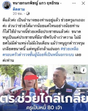 เมื่อเวลา 11.00 น. วันที่ 2 ก.พ. ที่บริเวณหน้าแดนเนรมิตเก่า ถนนพหลโยธิน นายธมนันท์ แตงทิม หรือ “จ่าคิงส์ แตงทิม สะพานใหม่” อดีต สห.ทอ. ได้เปิดเผยถึงความคืบหน้ากรณี “ครูเรย์” (นามสมมติ) อายุ 33 ปี ครูสอนนาฏศิลป์ที่ตกเป็นข่าวติดหนี้นอกระบบเกือบ 80 เจ้า จนต้องจ่ายดอกเบี้ยสูงถึงวันละ 1 แสนบาท และถูกเจ้าหนี้ตามทวงหนี้โหดถึงบ้านและโรงเรียน จนต้องเข้าร้องทุกข์ที่กองปราบปรามก่อนหน้านี้ แต่กลับถูกกระแสสังคมตีกลับและขุดคุยข้อมูลเพิ่มว่ามีพฤติกรรมยืมเงินลูกศิษย์จนเป็นหนี้บานปลายกว่า 1.5 ล้านบาท จนเกิดกระแสวิพากษ์วิจารณ์อย่างหนักในโลกโซเชียลนั้น