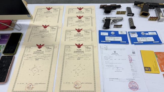 4.อาวุธปืนพกกึ่งอัตโนมัติ จำนวน 3 กระบอก